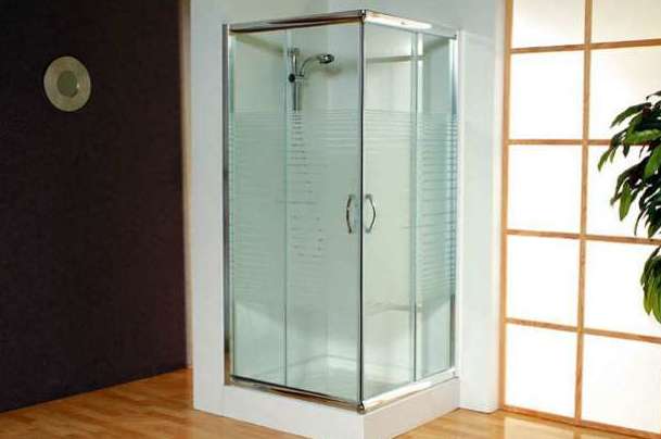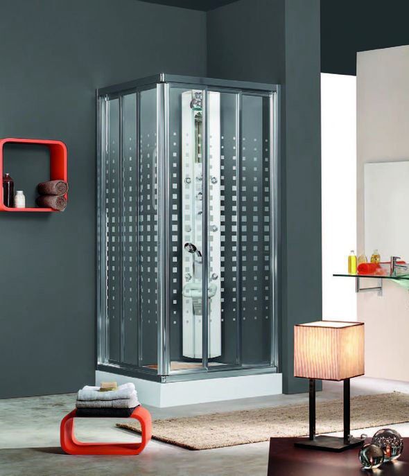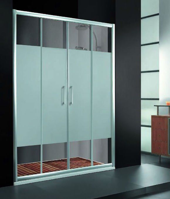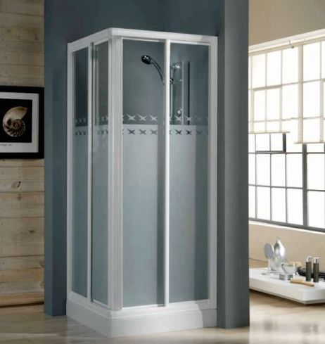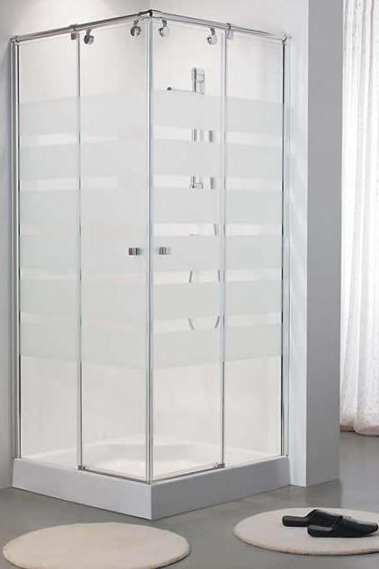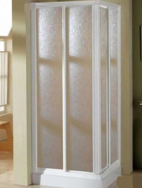 Mamparas de ducha de puertas correderas de aluminio color blanco o cromado, con acristalamiento o bien con placa de PVC.